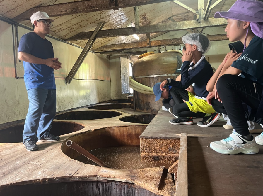 質問攻め!もちろん、もろみの攪拌体験もさせてもらいました!