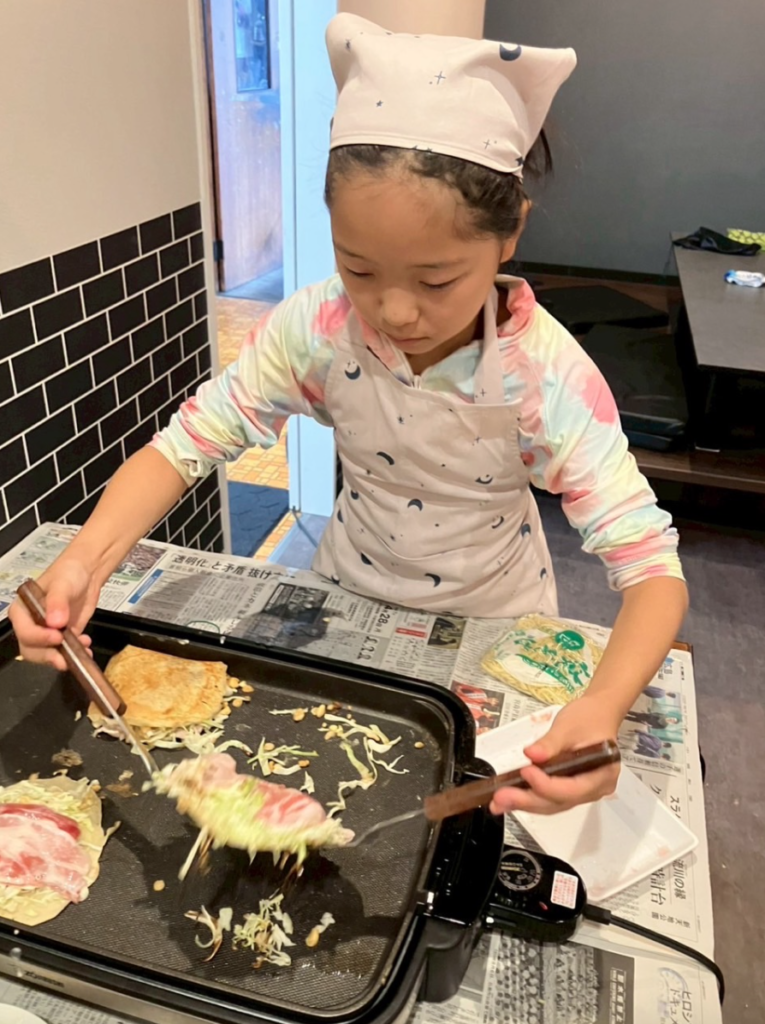 その後は、明石ストアーへ移動して、お昼のお好み焼きづくり!