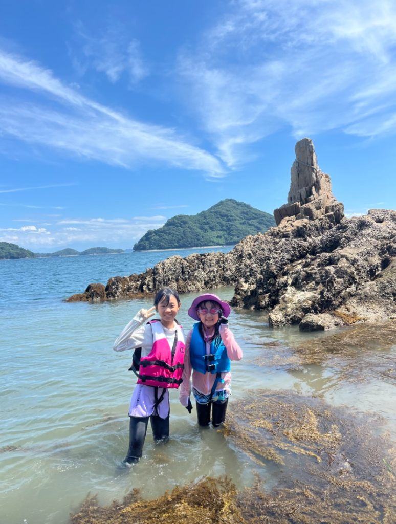 安全対策バッチリで、磯遊びしたりシュノーケリングをしたり。