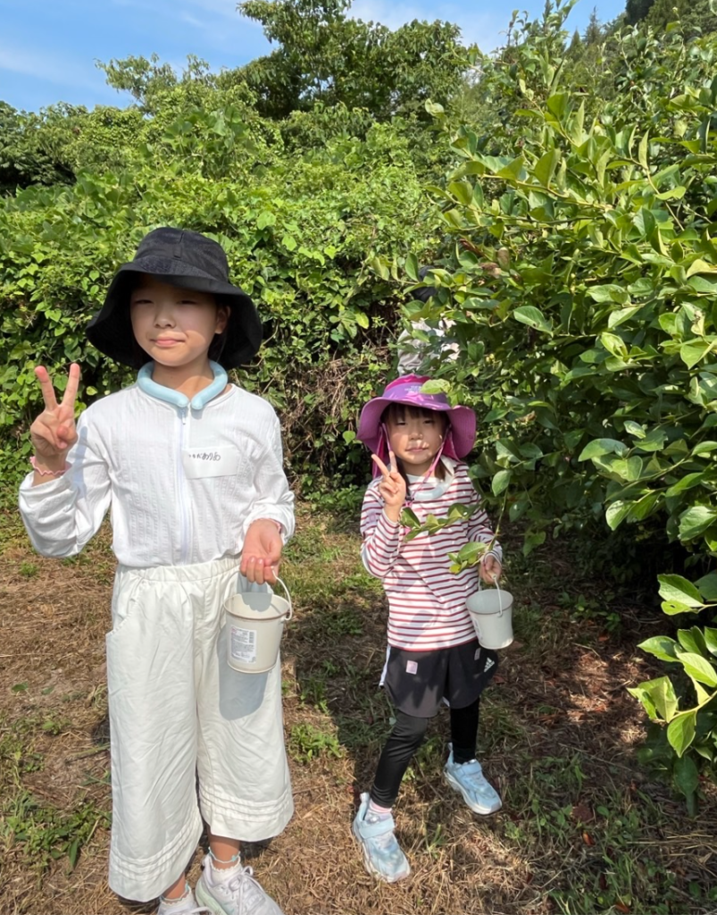 「こんなおいしいブルーベリー食べたことがない!」と言いながら食べながらブルーベリーを採りました。もぐもぐ、「おいしー🎵」