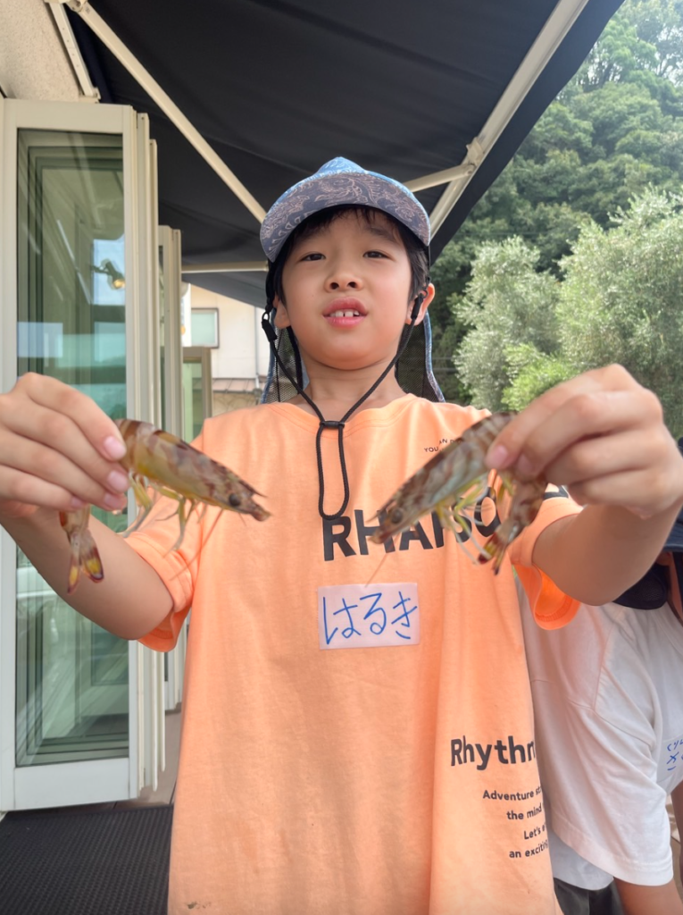 クルマエビも観察しました!氷にいれたら仮死状態になって動かないって!みんな興味津々で触りました!