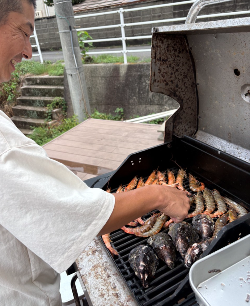 鈴木さんが育てて焼いてくれたエビとカキは絶品でした!