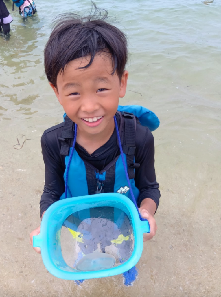 シーカヤックに疲れたらみんなで海遊び!海の中を観察したり、シュノーケリングをしたり、砂浜にお城をつくったり、貝を拾ったり。みんな興味津々です!