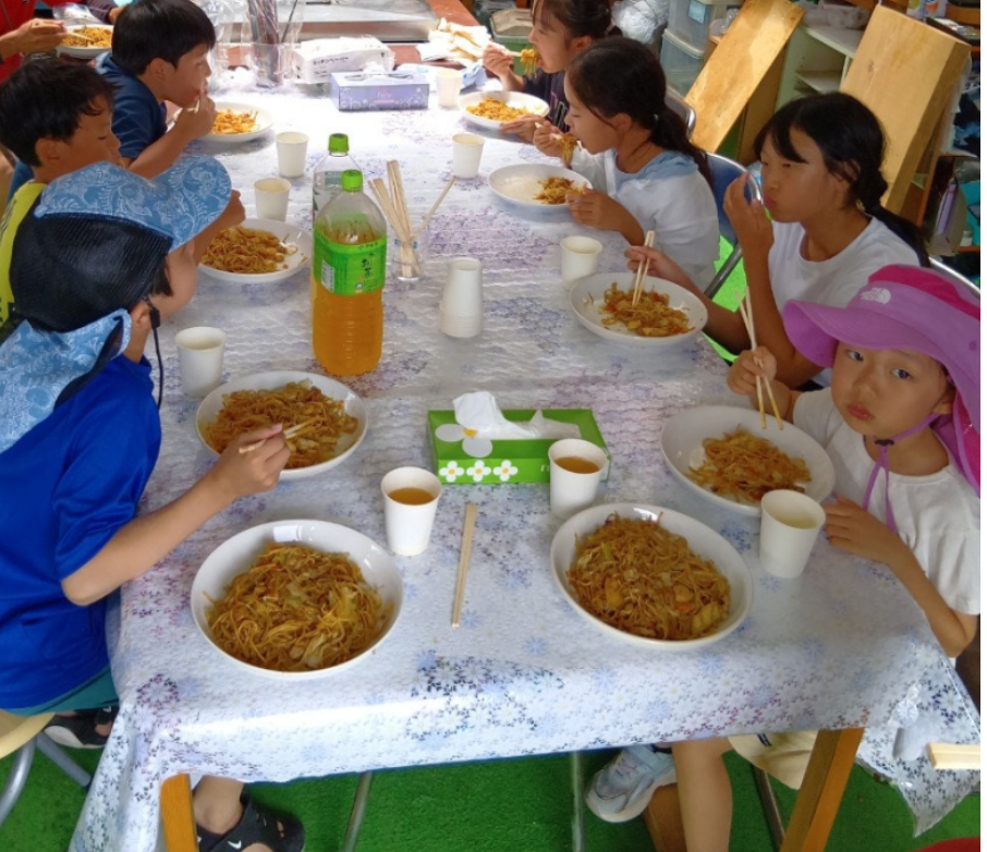 見た目は普通の焼きそばなのにさっぱり!みんなパクパクと食べてお腹いっぱいなり!