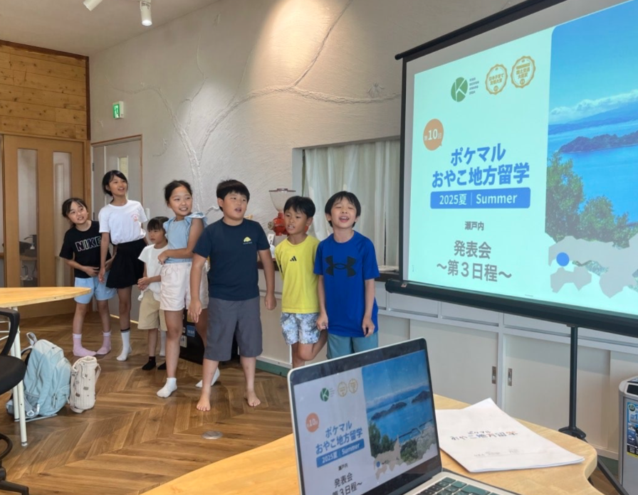 「これからポケマルおやこ地方留学 瀬戸内 発表会をはじめます!」(全員で)
